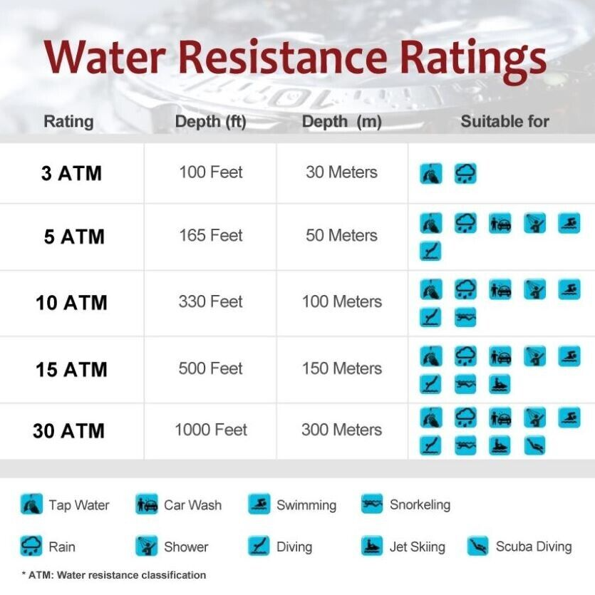 Water Resistance 30 m (3 ATM)