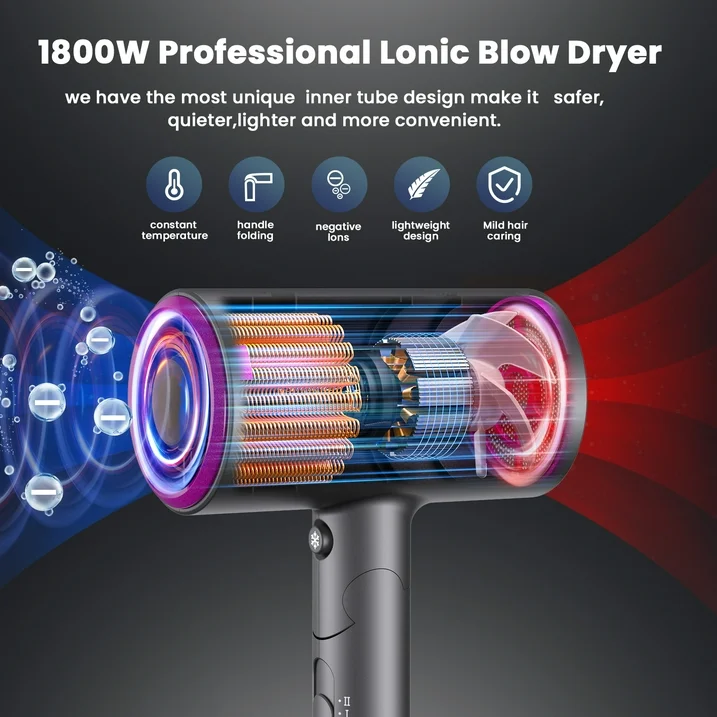 - Ions & Bioceramic Hair Care —Â Adopts ion and bio-ceramic technology, our hair blower will release millions of moisturizing negative ions combined with far-infrared heat to reduce static and make hair soft and smooth. With constant temperature protection function, intelligent temperature control to prevent overheating damage, good for hair care.